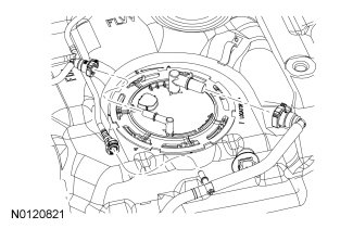 9. NOTE: Inspect the mating surfaces of the FP module flange and the fuel tank O-ring seal contact surfaces. Do not adjust the O-ring seal contact area of the fuel tank flange or the fuel tank. Install a new FP module or fuel tank if the O-ring seal contact area is damaged.