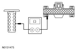 - Measure the resistance between the FCDIM (Front Control/Display Interface Module) C2123-9, circuit GD115 (BK/GY), harness side and ground.