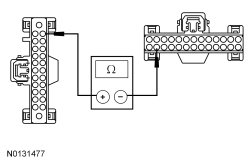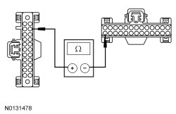 - Measure the resistance between the ACM (Audio Control Module) C240A-13, circuit GD114 (BK/BU), harness side and ground.