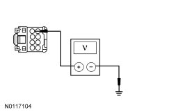 - Measure the voltage between the FLM (Front Lighting Control Module) C205-1, circuit SBP23 (WH/RD), harness side and ground.