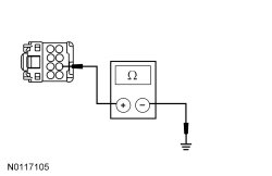 - Measure the resistance between the FLM (Front Lighting Control Module) C205-7, circuit GD115 (BK/GY), harness side and ground.