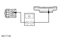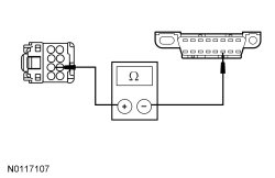 - Measure the resistance between the FLM (Front Lighting Control Module) C205-2, circuit VDB04 (WH/BU), harness side and the DLC (Data Link Connector) C251-6, circuit VDB04 (WH/BU), harness side.