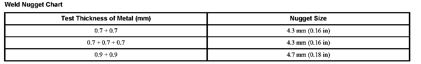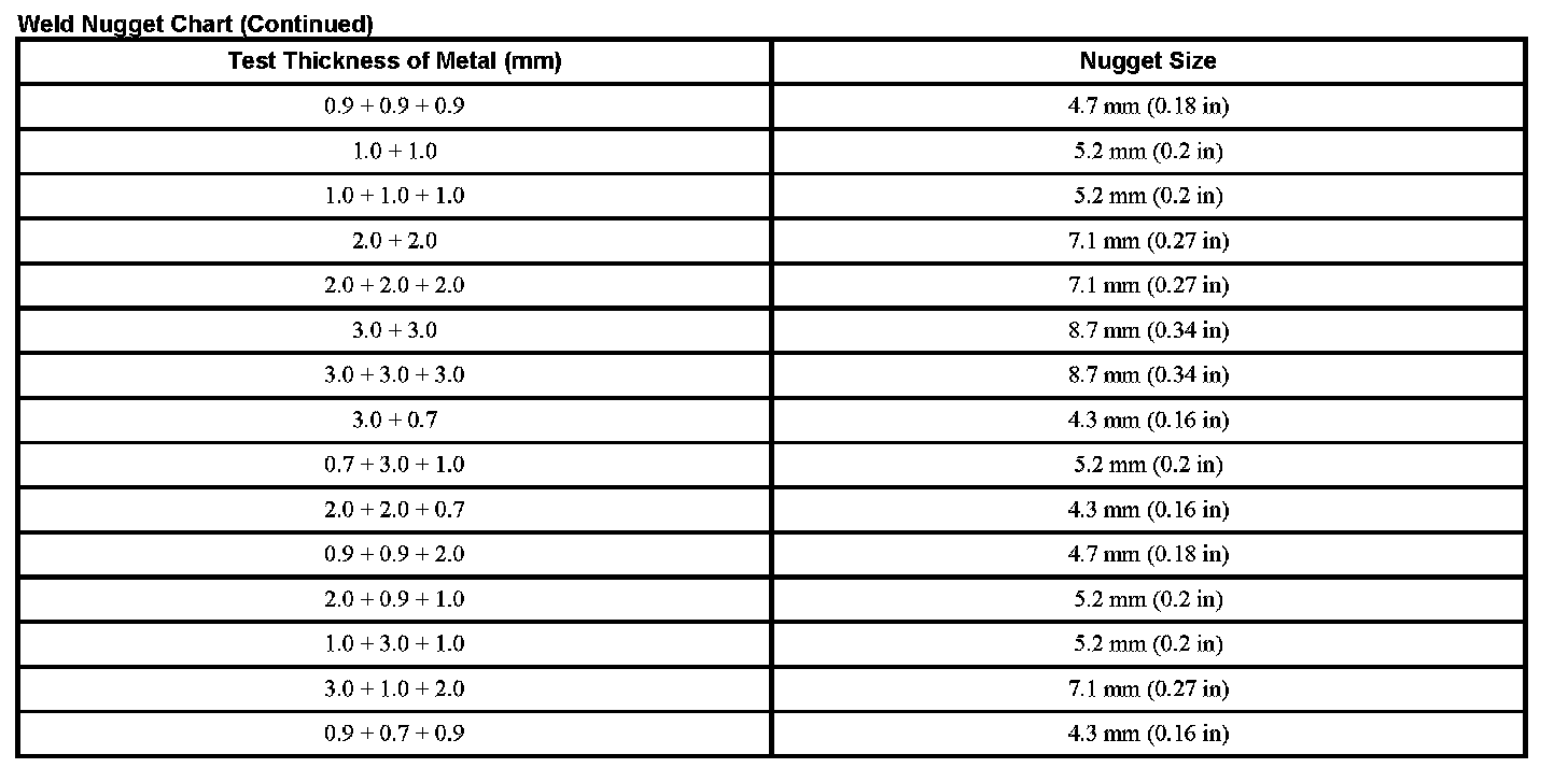 Weld Nugget Chart (Part 2):