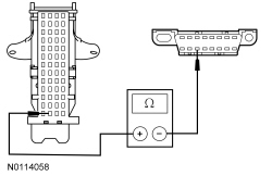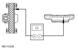 - Measure the resistance between the DLC (Data Link Connector) C251-6, circuit VDB04 (WH/BU), harness side and the DLC (Data Link Connector) C251-14, circuit VDB05 (WH), harness side.