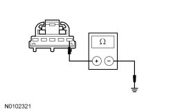 - Measure the resistance between the HUD (Head Up Display) module C2395-1, circuit GD115 (BK/GY), harness side and ground.