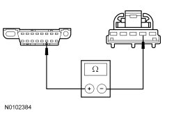 - Measure the resistance between the HUD (Head Up Display) module C2395-3, circuit VDB04 (WH/BU), harness side and the DLC (Data Link Connector) C251-6, circuit VDB04 (WH/BU), harness side.