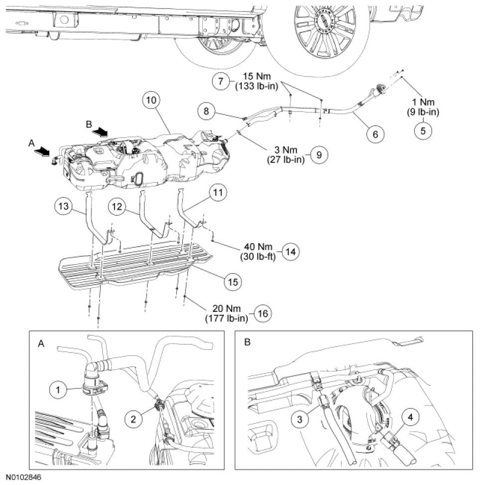 Fuel Tank and Filler Pipe - Exploded View