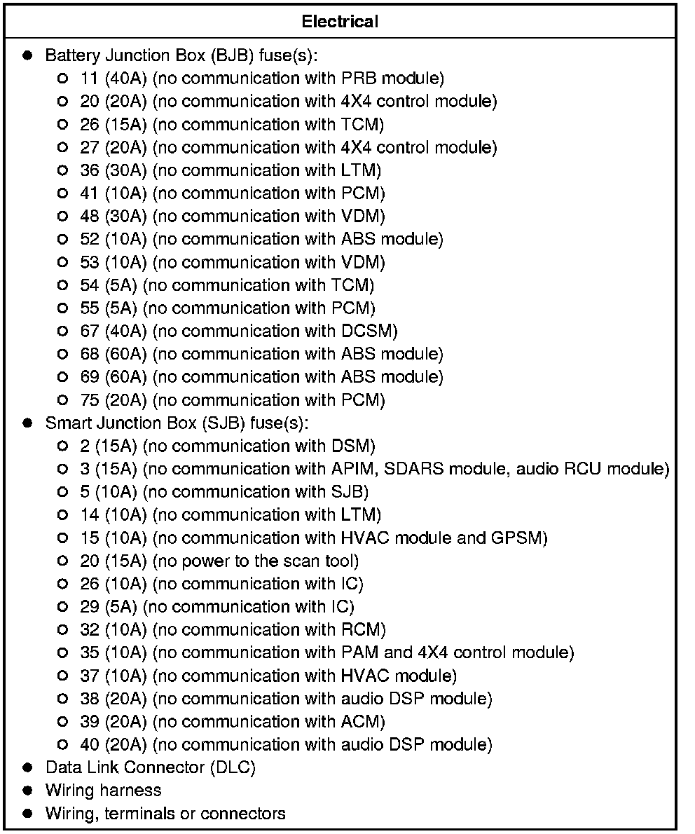 - If a module fails to communicate during the network test, GO to Symptom Chart. Symptom Related Diagnostic Procedures