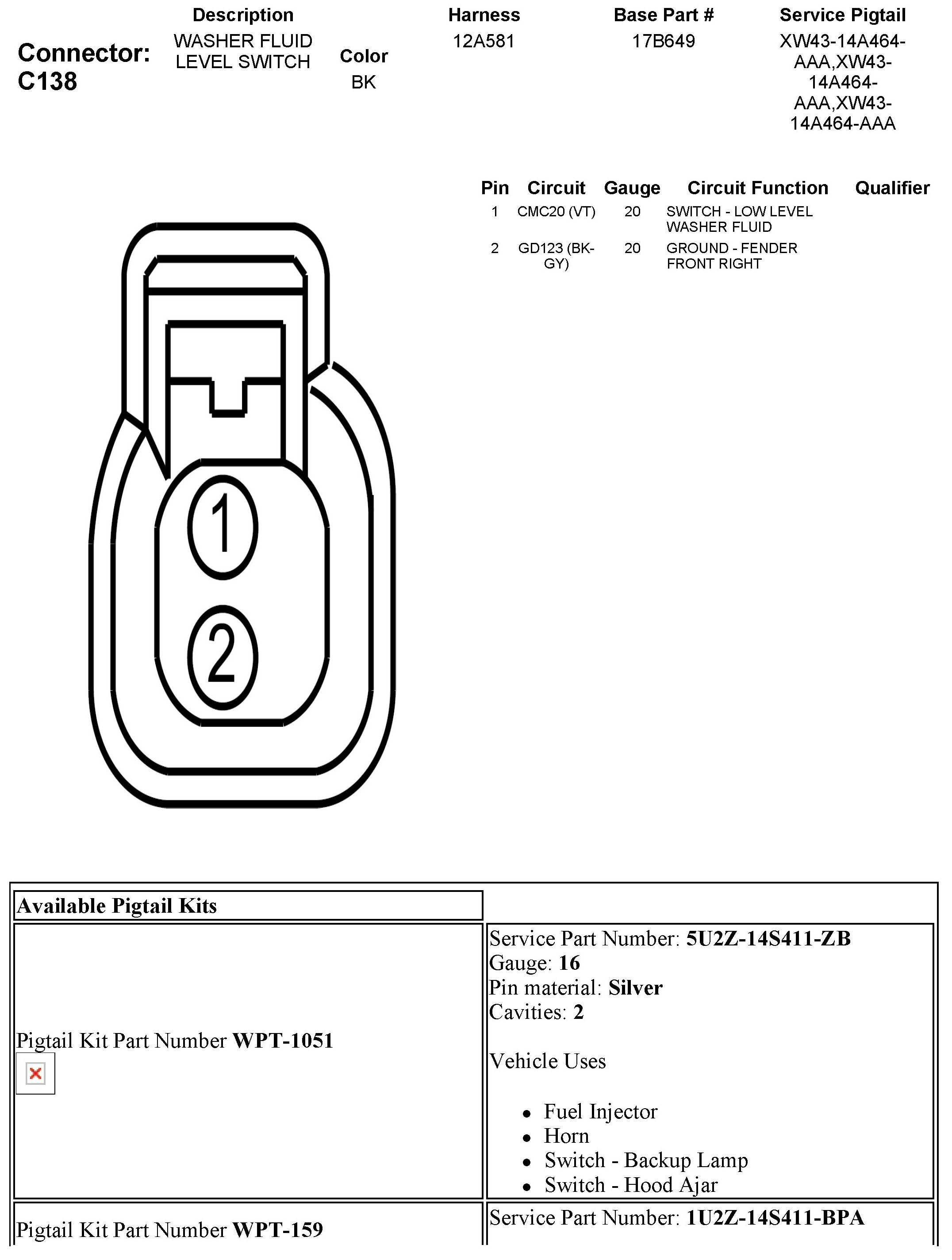 Washer Fluid Level Switch