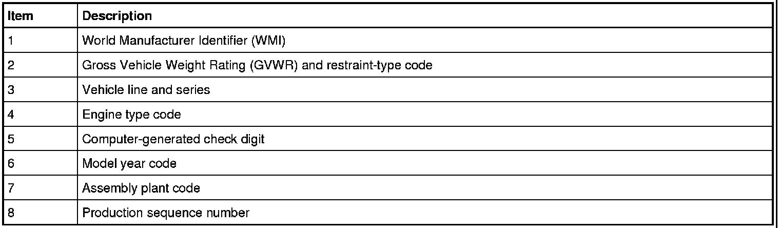 The last 6 VIN (Vehicle Identification Number) positions are a numeric code for the vehicle build sequence. This is also the vehicle serial and warranty number. The serial number can also be found on the engine block, transmission and frame.
