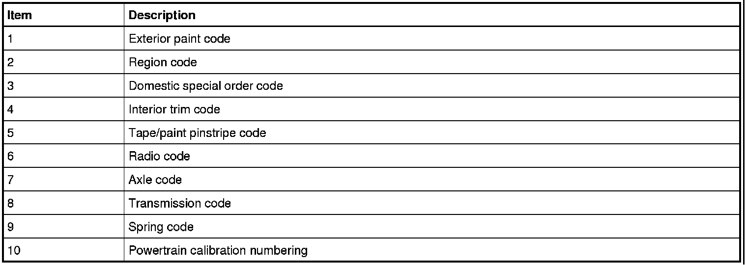 Powertrain calibration information is printed in the lower right corner of the VC (Vehicle Certification) label. Only the base calibration information is printed. Revision levels will not appear, however, they can be obtained through a scan tool using the most current software revision.