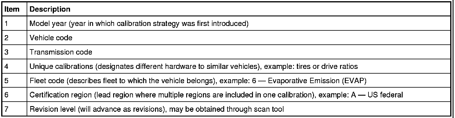 NOTE: Powertrain calibration information is limited to a maximum of 5 characters per line on the Vehicle Certification (VC) label. Because of this, calibration identification consisting of more than 5 characters will wrap to the second line on the VC (Vehicle Certification) label.