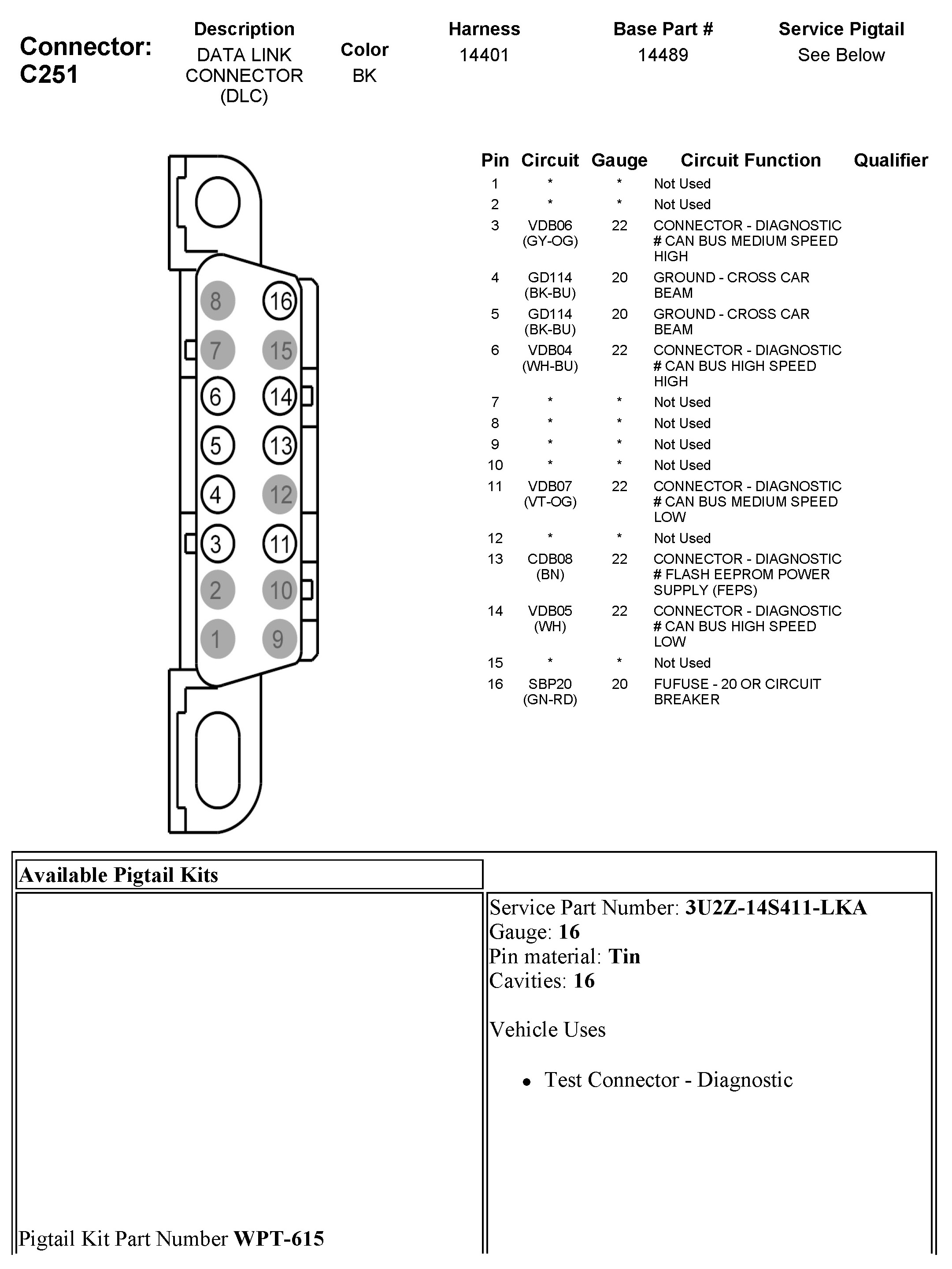 Data Link Connector: Diagrams