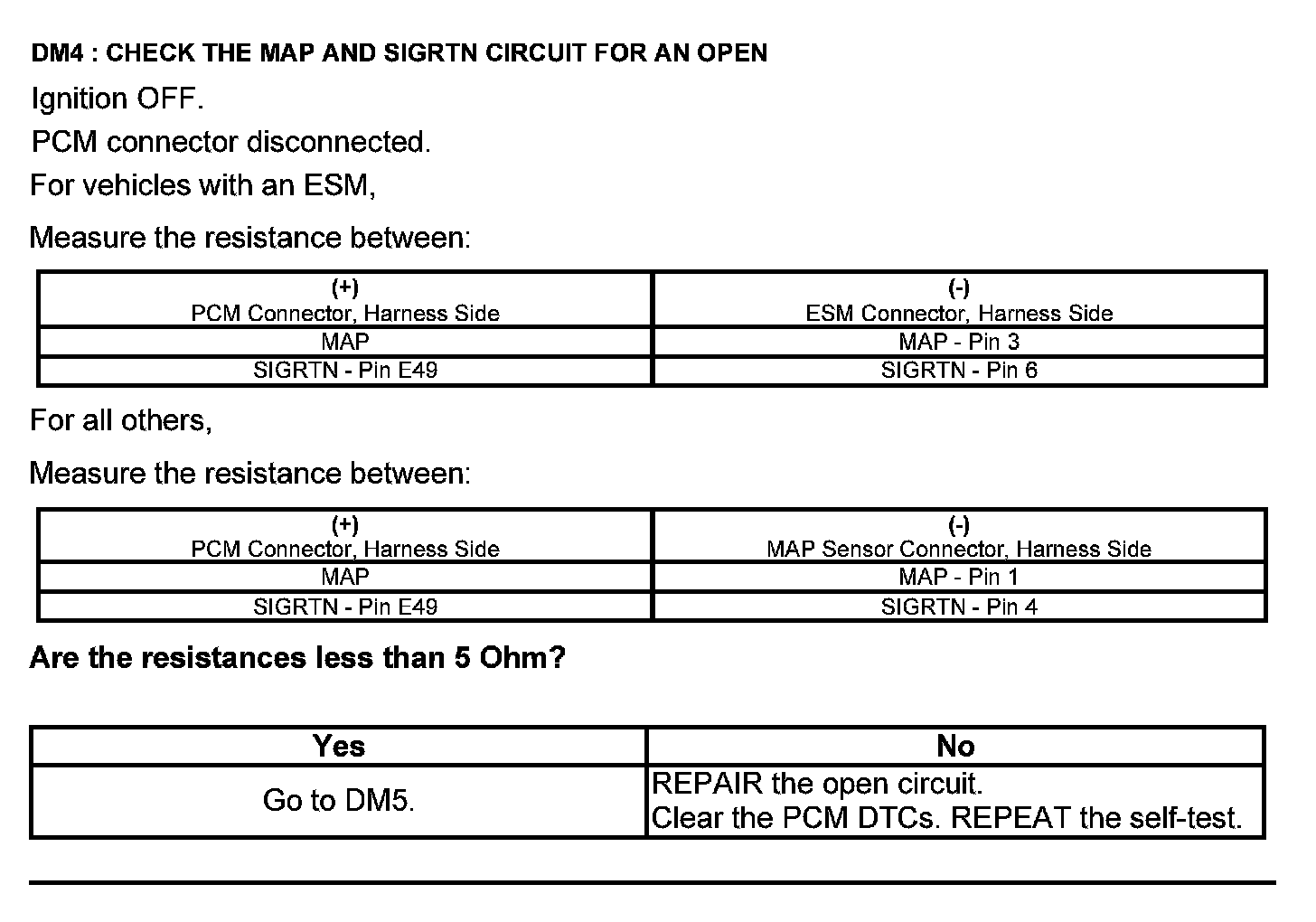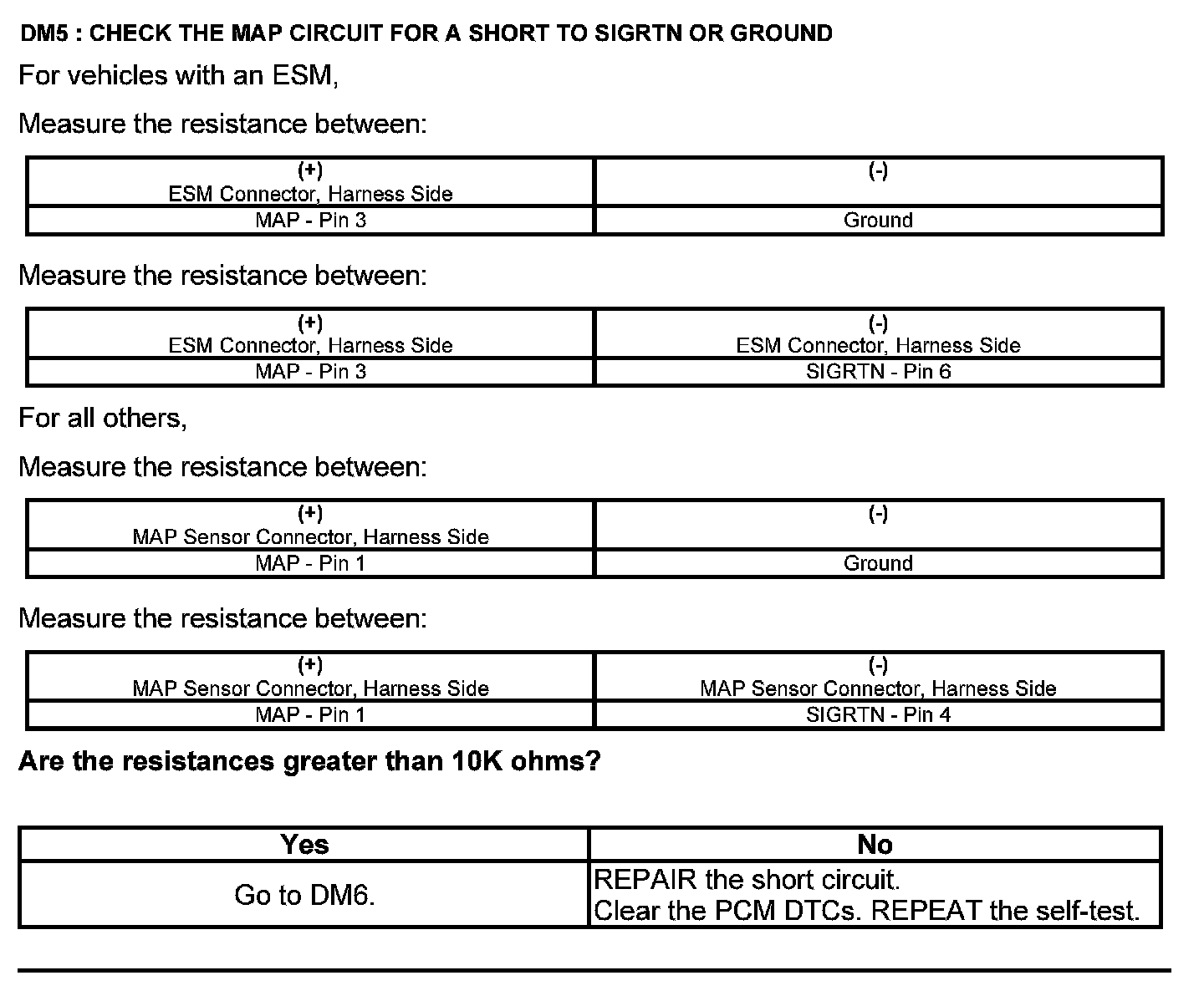 Test DM: Manifold Absolute Pressure (MAP) Sensor