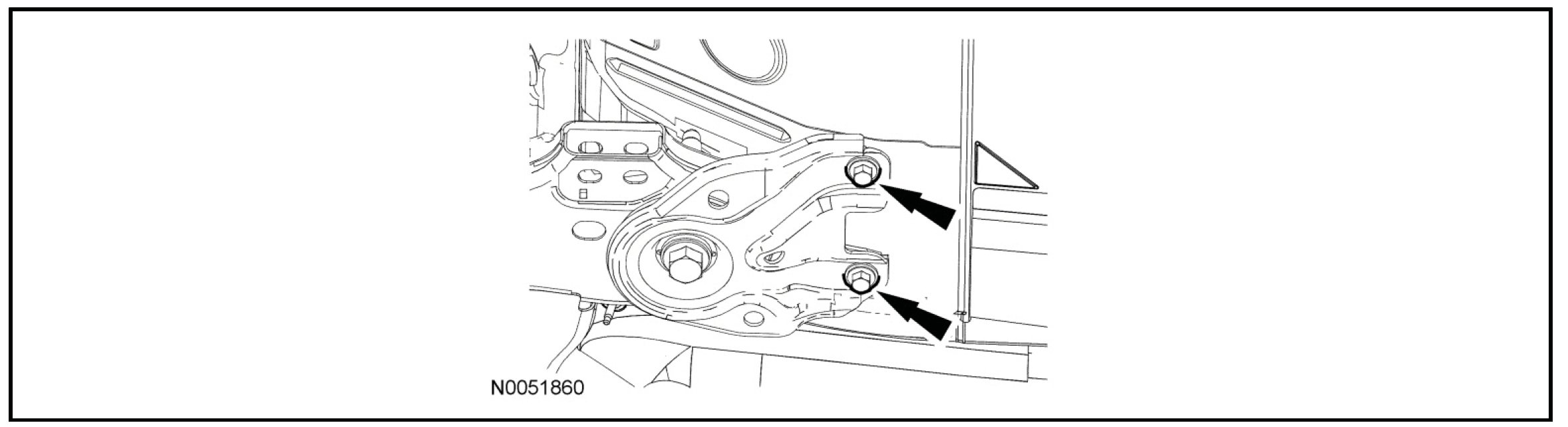 7. Remove and discard the stabilizer bar bracket-to-front subframe bolts.