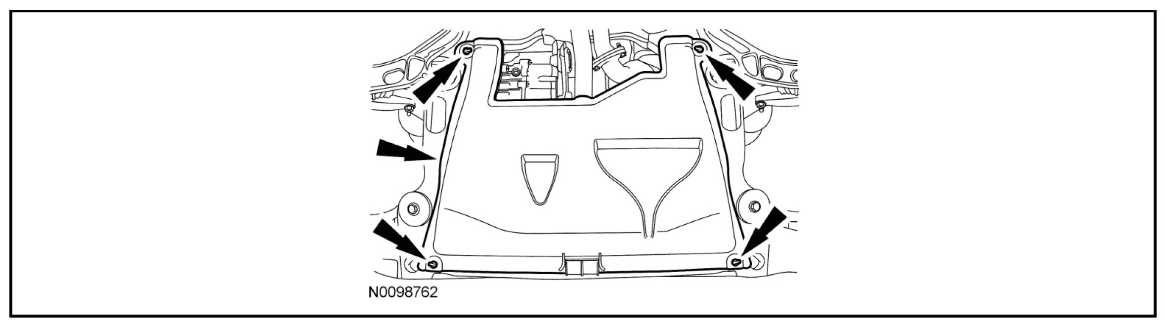 19. Position the RH engine splash shield and install the 2 lower pin-type retainers.