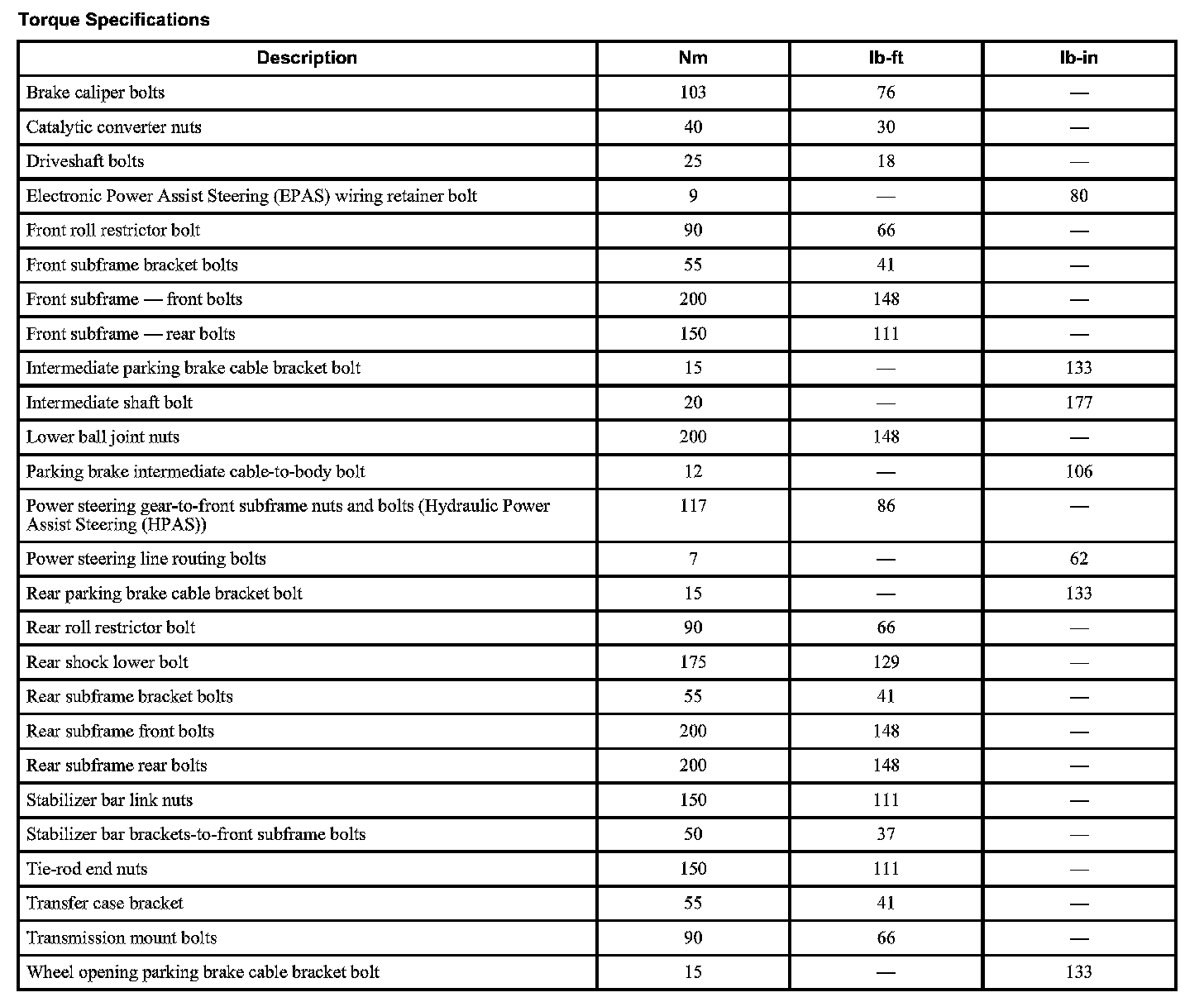 Subframe: Specifications