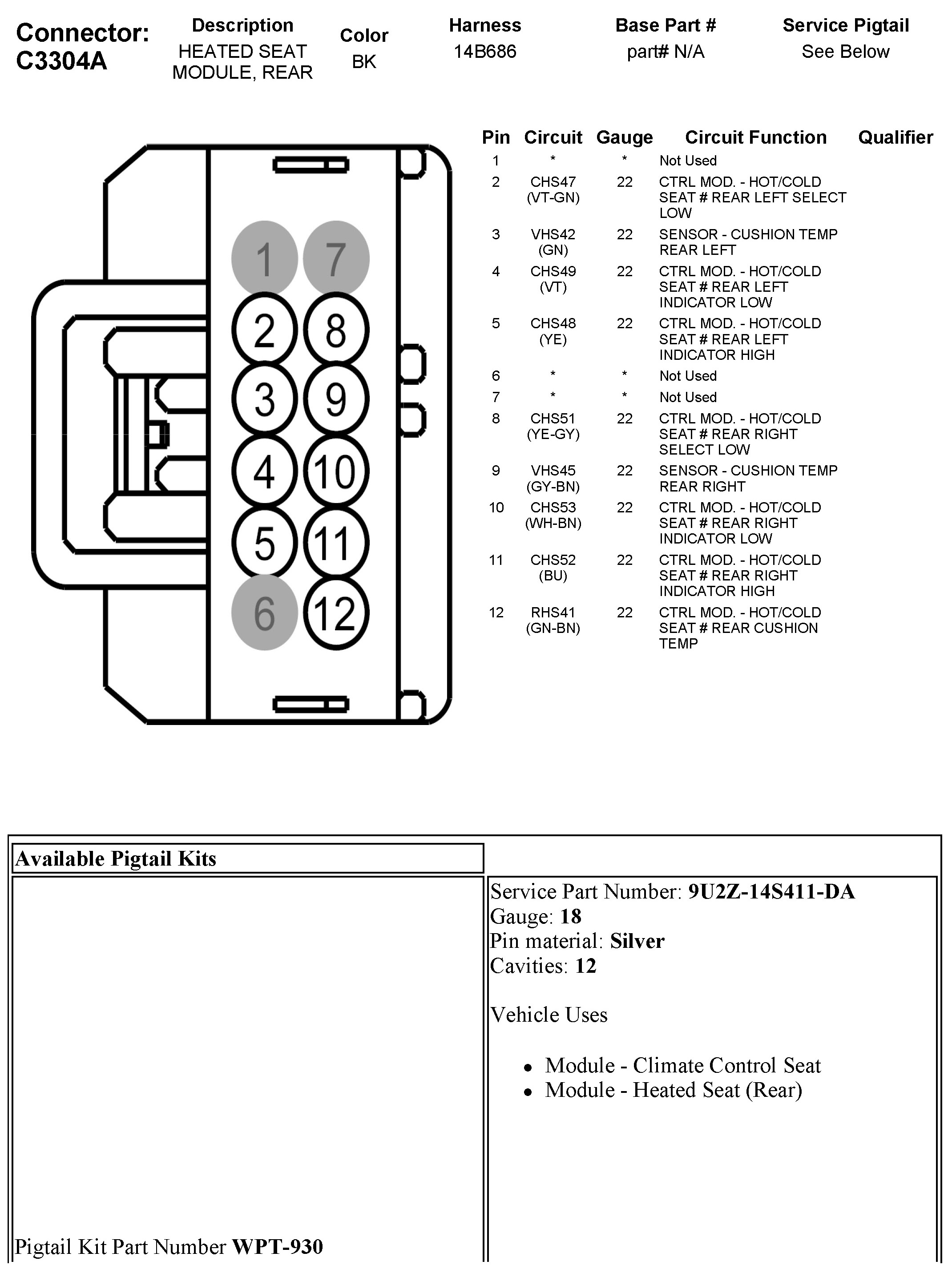 C3304A Heated Seat Module, Rear