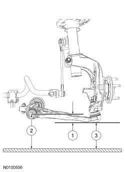 1. Measure the distance between the flat level surface and the center of the lower control arm-to-subframe bolt (measurement 2).