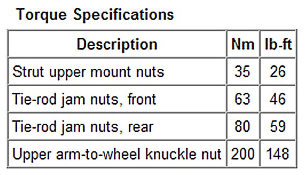 Torque Specifications: