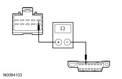 - Measure the resistance between the FCIM (Front Controls Interface Module) C2403-2, circuit VDB07 (VT/OG), harness side and the DLC (Data Link Connector) C251-11, circuit VDB07 (VT/OG), harness side.