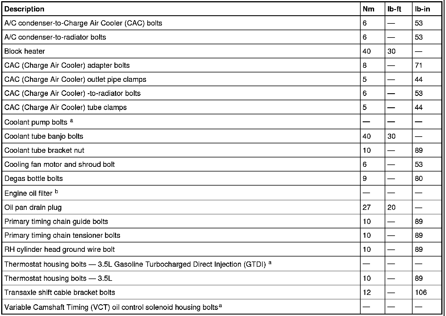 Torque Specifications