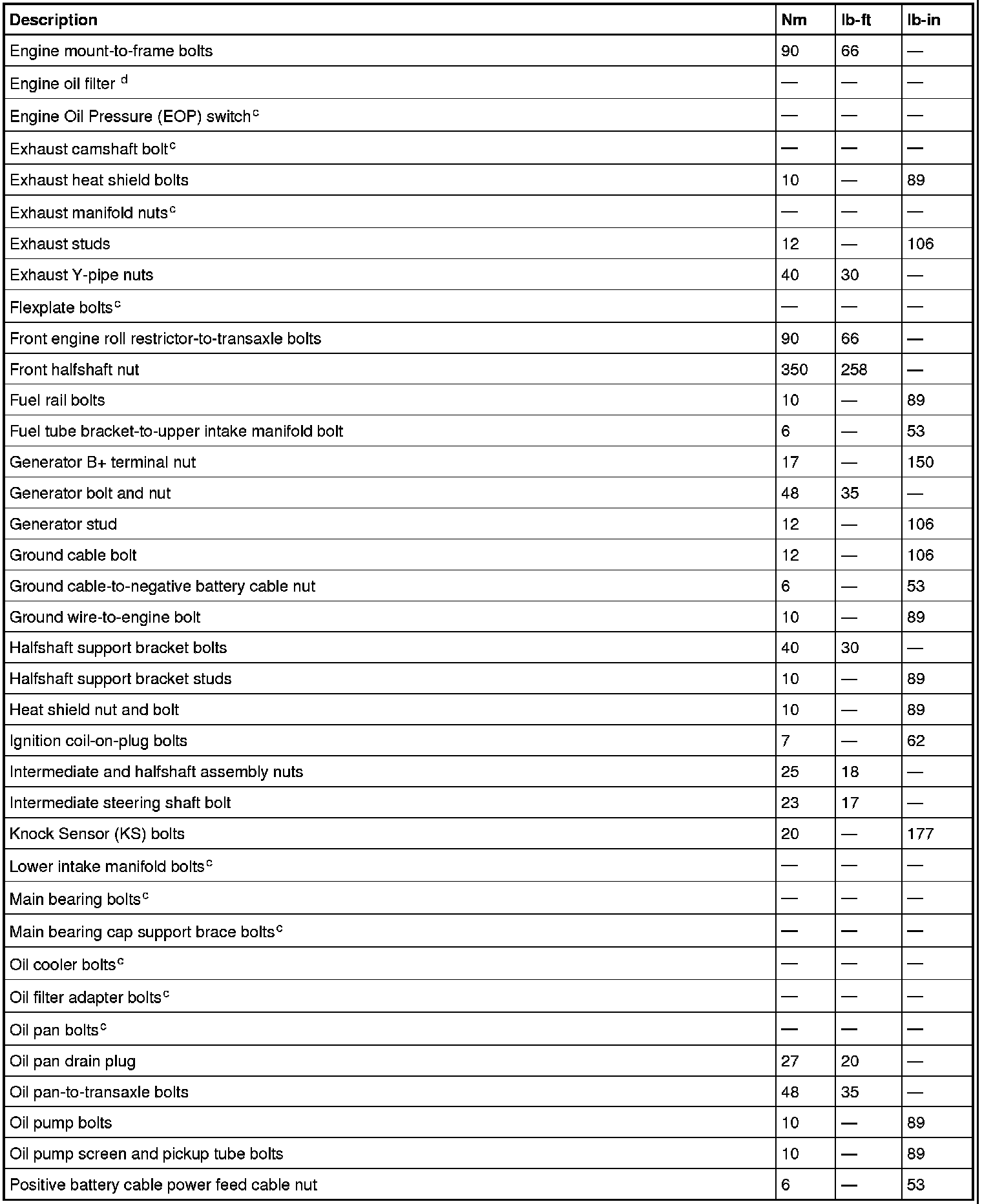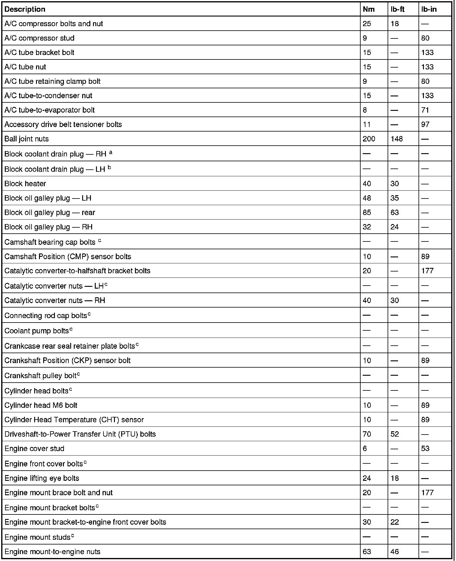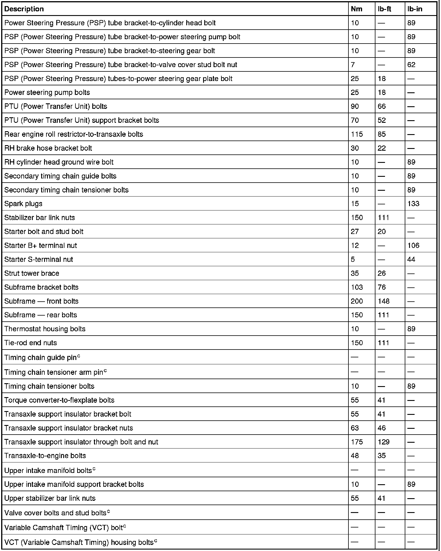 Torque Specifications