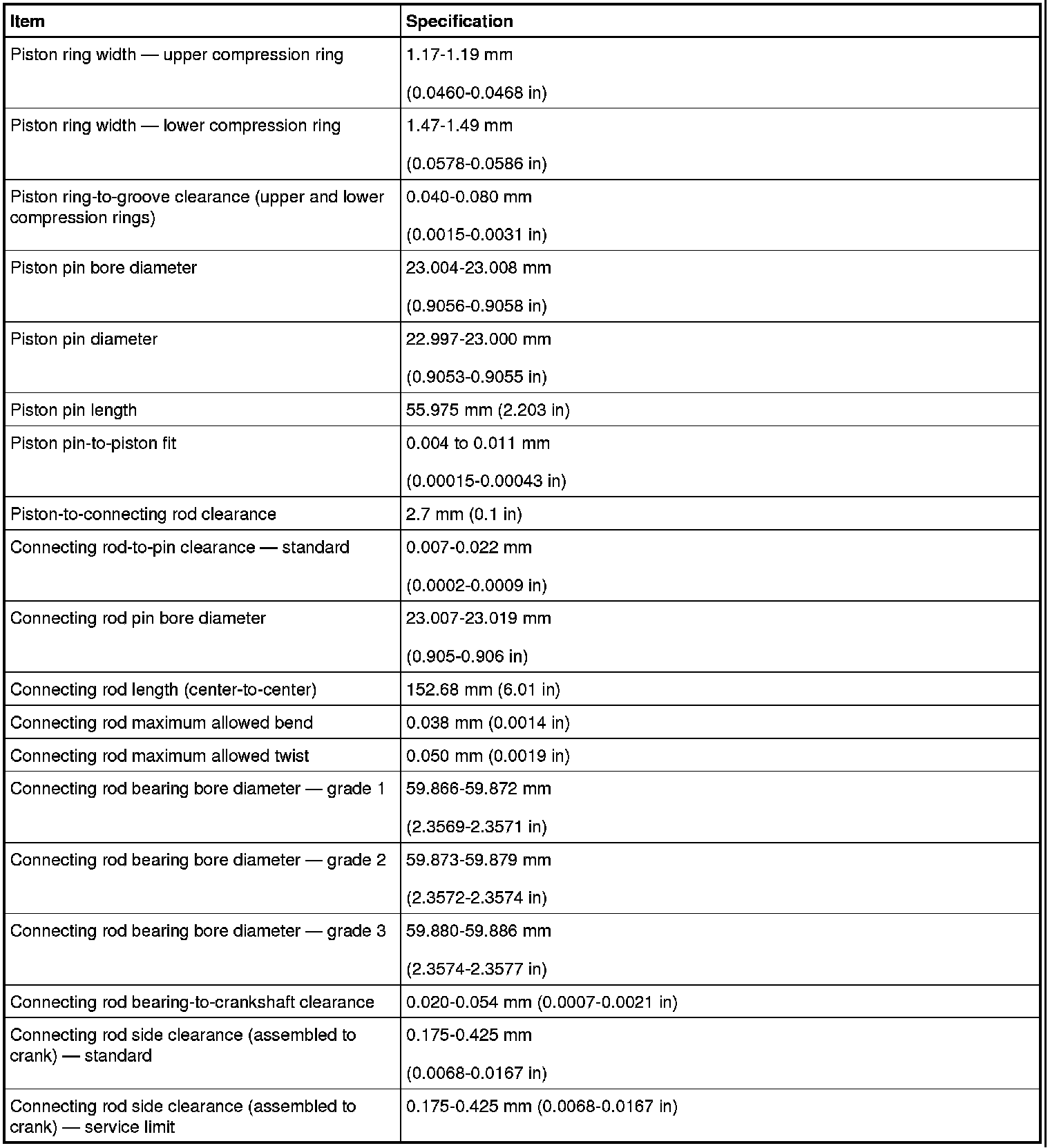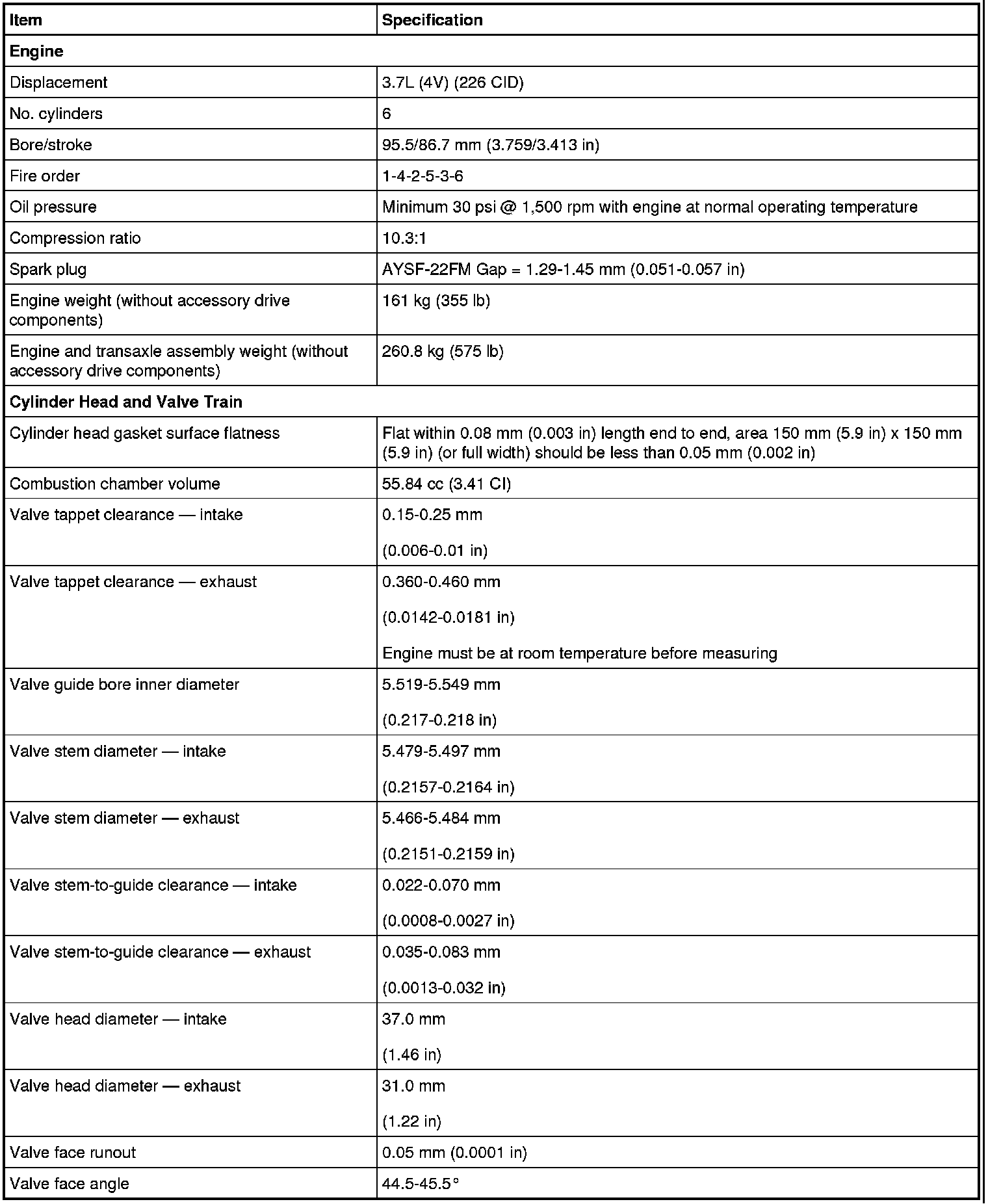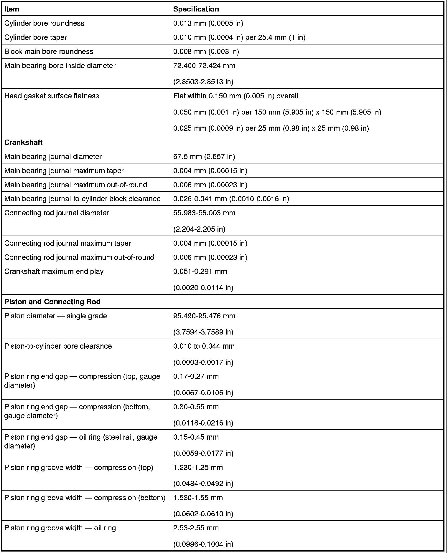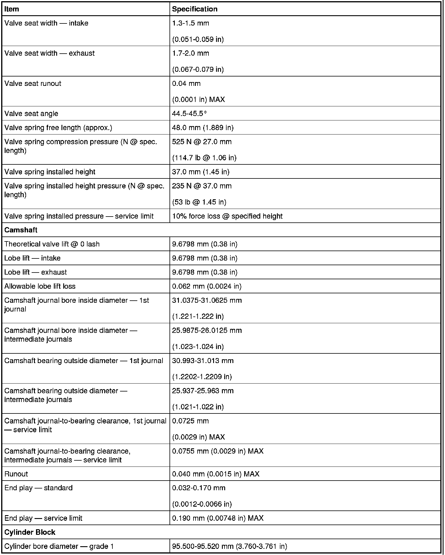 Torque Specifications