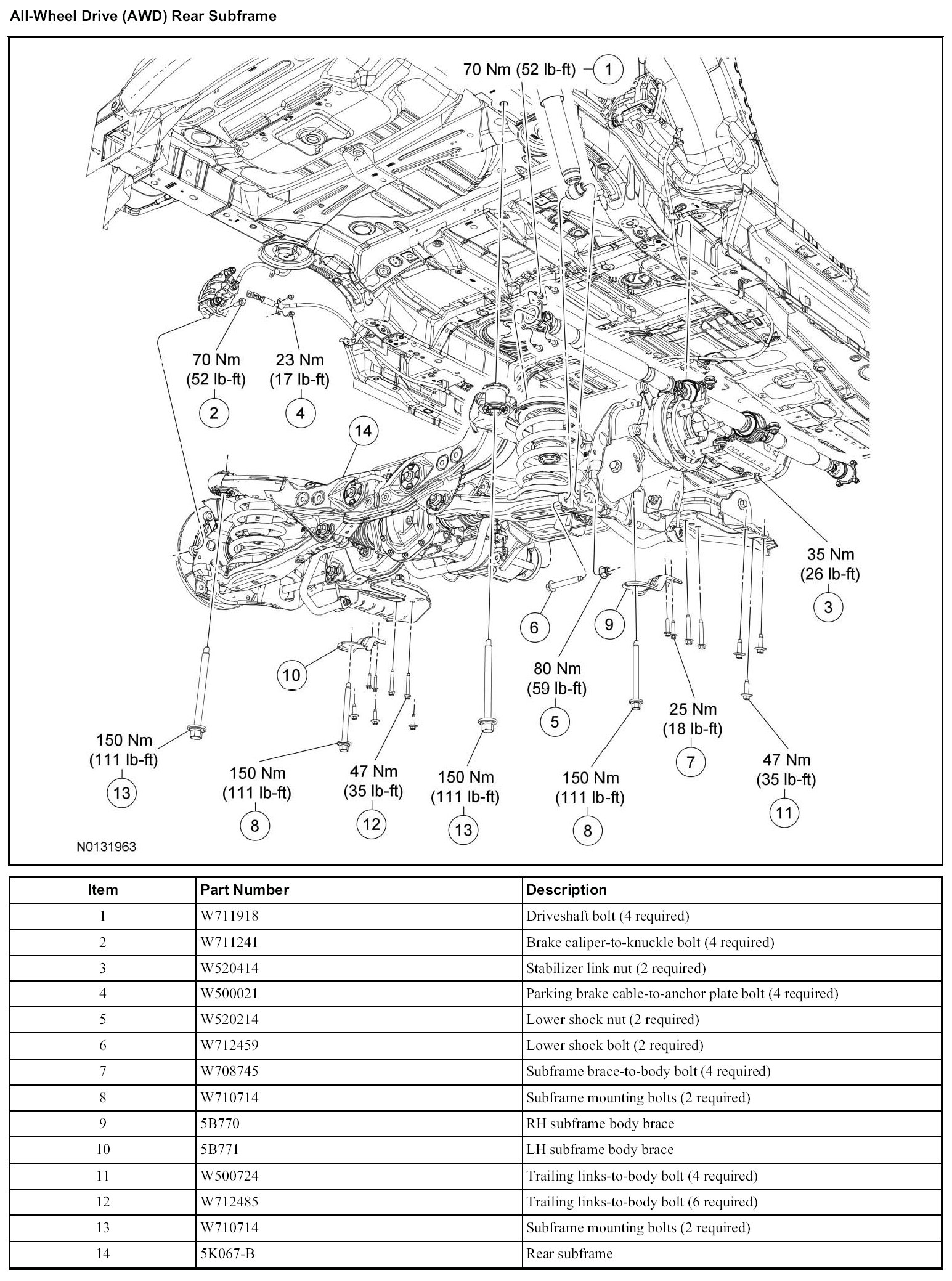 NOTICE: Suspension and subframe fasteners are critical parts because they affect performance of vital parts and systems and their failure may result in major service expense. A new part with the same part number must be installed if installation becomes necessary. Do not use a replacement part of lesser quality or substitute design. Torque values must be used as specified during reassembly to make sure of correct retention of these parts.