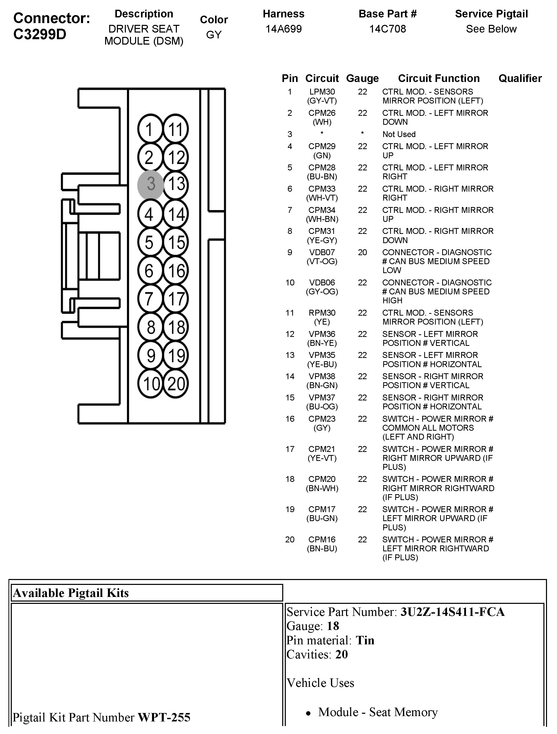 C3299D Driver Seat Module (DSM)