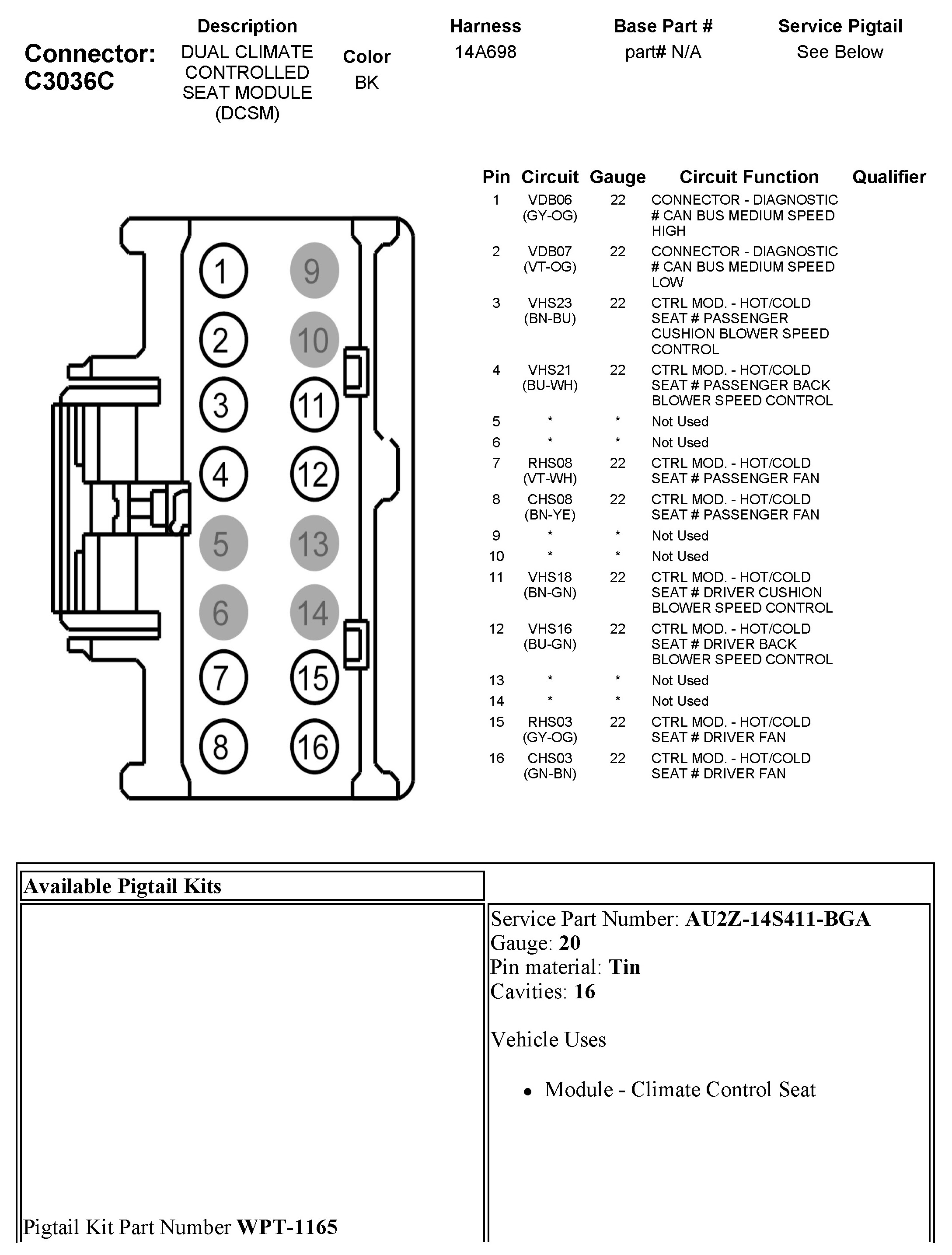C3036C Dual Climate Controlled Seat Module (DCSM)
