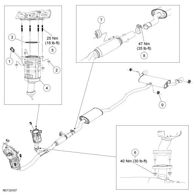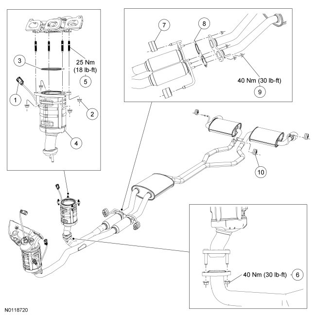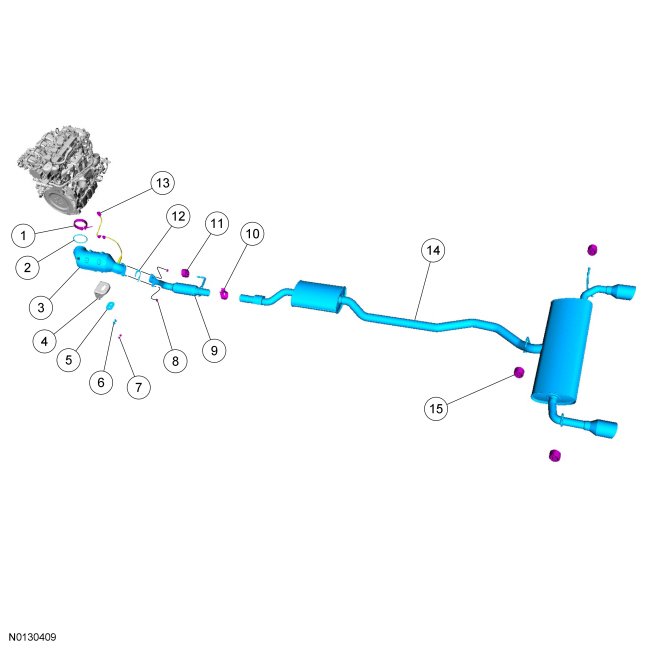 2.0L Gasoline Turbocharged Direct Injection (GTDI) Catalytic Converter and Exhaust Pipes