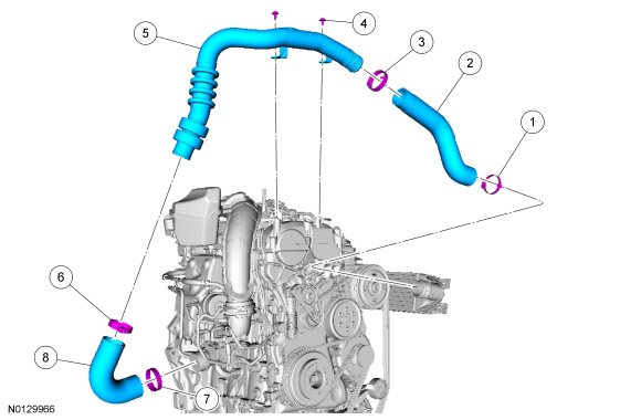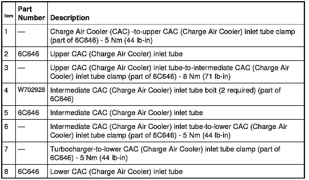 NOTE: Securely seal the Charge Air Cooler (CAC) tubes-to-turbocharger to prevent unmetered air from entering the engine or pressurized air from escaping.
