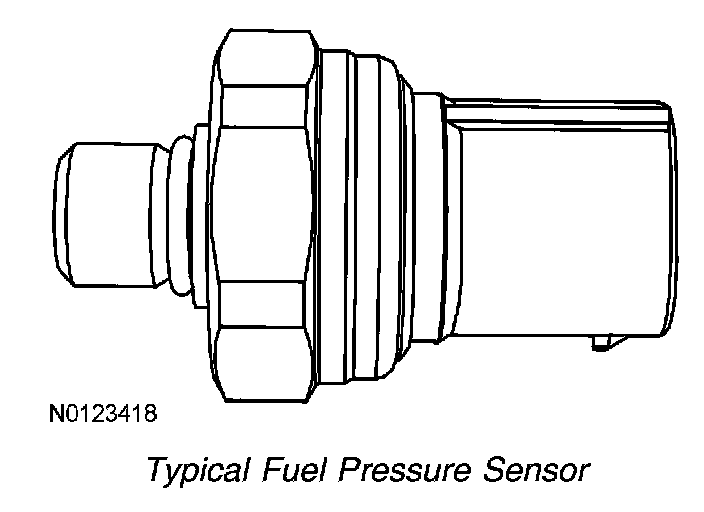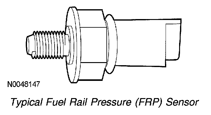The FRP sensor is a diaphragm strain gauge device. The FRP sensor measures the pressure difference between the fuel rail and atmospheric pressure. The FRP sensor nominal output varies between 0.5 and 4.5 volts, with 0.5 volts corresponding to 0 MPa (0 psi) gauge and 4.5 volts corresponding to 26 MPa (3771 psi) gauge. The sensor can read vacuum and may lower the output voltage to slightly below 0.5 volts. This condition is normal and is usually the case after several hours of cold soak before the vehicle dome light is turned ON. The FP assembly is energized at the same time the dome light is commanded ON. A disabled or malfunctioning dome light does not affect the FP assembly control.