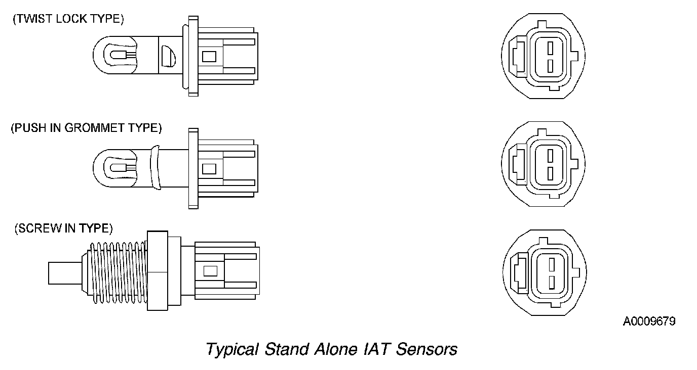 Currently there are 2 types of IAT sensors used, a stand alone and an integrated type. Both types function the same, however the integrated type is incorporated into the mass airflow (MAF) sensor or the turbocharger intake pressure and temperature (TCIPT) sensor instead of being a stand alone sensor.