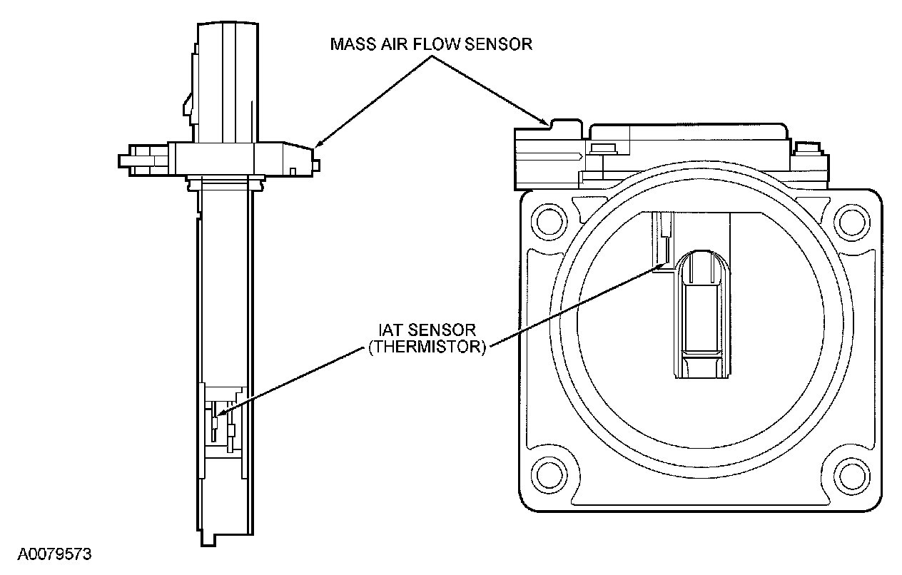 IAT sensor is a thermistor device in which resistance changes with temperature. The electrical resistance of a thermistor decreases as the temperature increases, and the resistance increases as the temperature decreases. The varying resistance affects the voltage drop across the sensor terminals and provides electrical signals to the PCM corresponding to temperature.