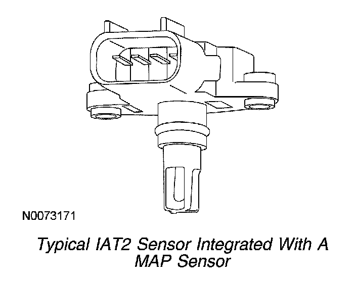 The IAT2 sensor for speed density control systems is centrally located on the intake manifold. The IAT2 sensor measures the intake manifold temperature. The PCM uses the information from the IAT2 sensor to determine the speed density air charge and provide input for various spark control functions. The IAT2 sensor for a speed density system is integrated with the MAP sensor.