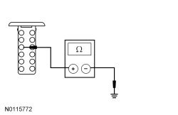 - Measure the resistance between the FCDIM (Front Control/Display Interface Module) C2123-9, circuit GD115 (BK/GY), harness side and ground.