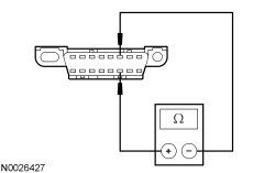- Measure the resistance between the DLC (Data Link Connector) C251-6, circuit VDB04 (WH/BU), harness side and the DLC (Data Link Connector) C251-14, circuit VDB05 (WH), harness side.