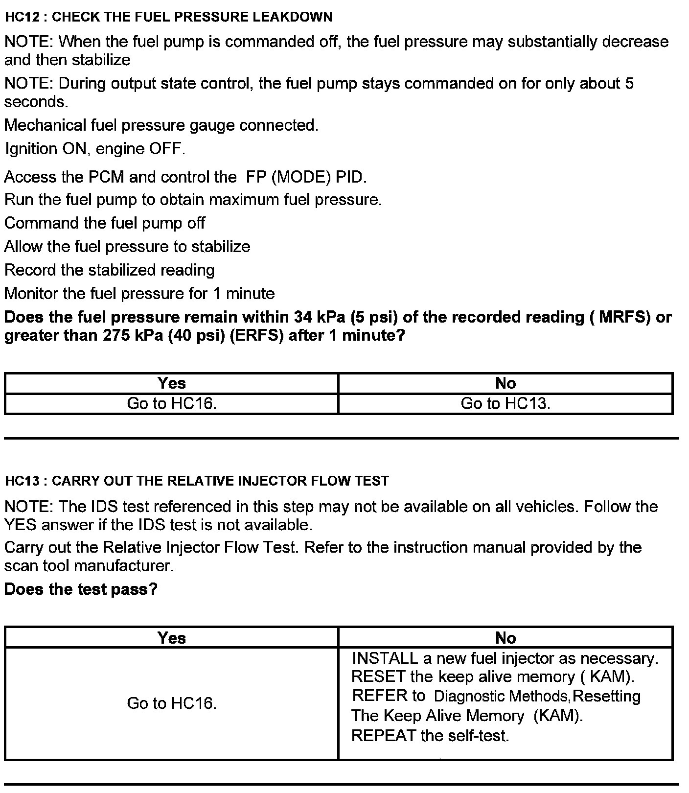 Test HC: Fuel Delivery System