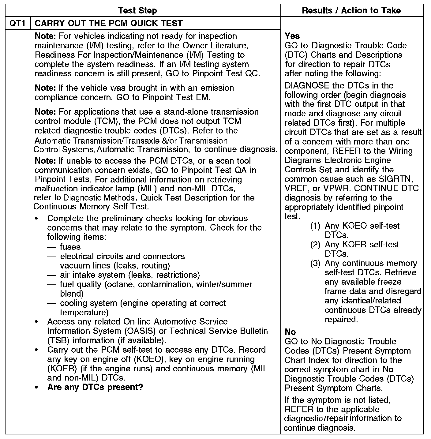 QT: Powertrain Control Module (PCM) Quick Test