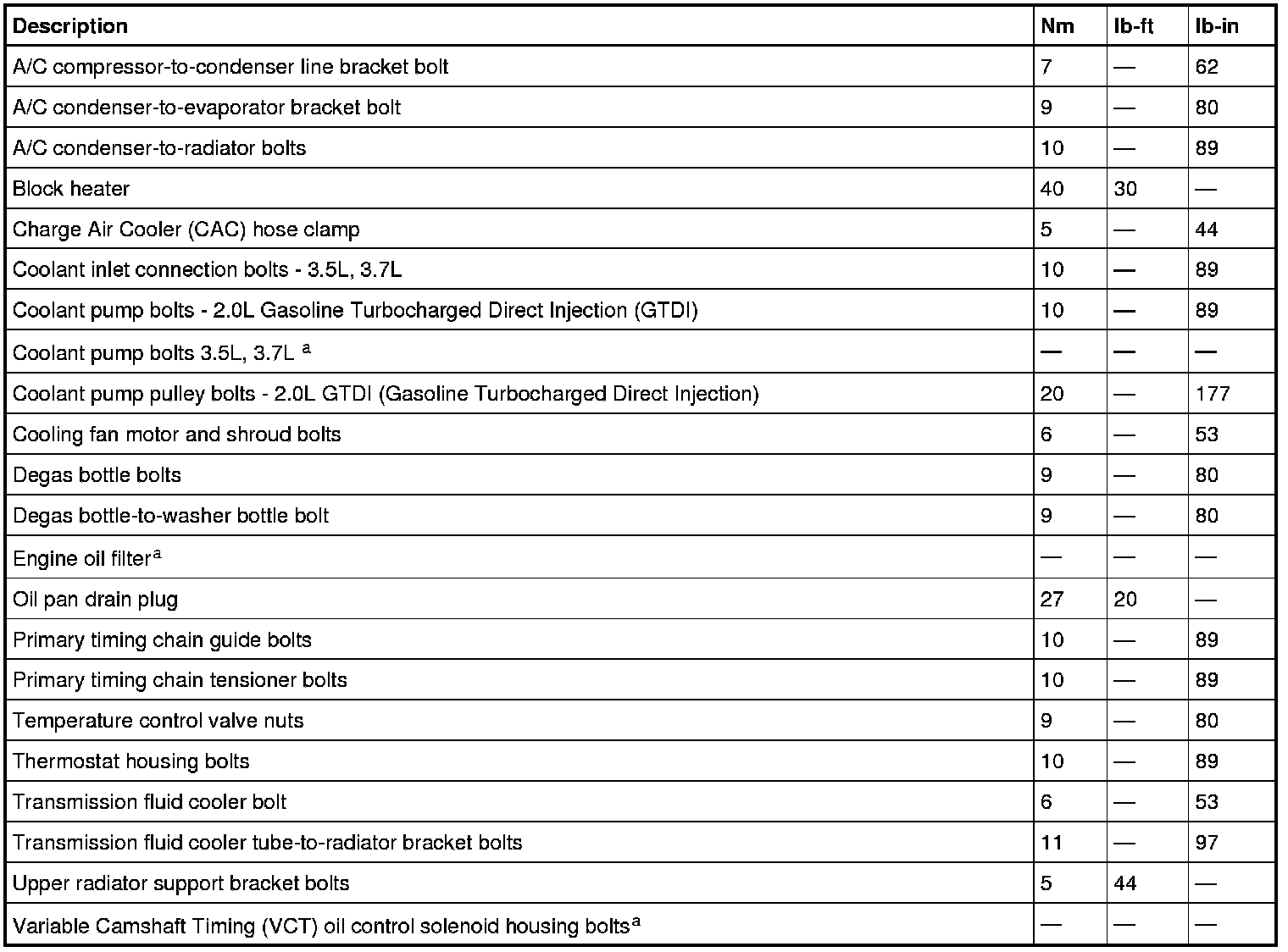 Torque Specifications