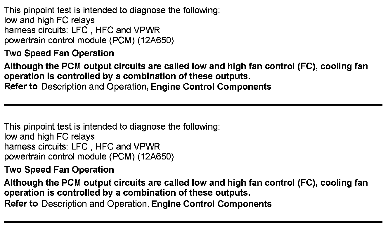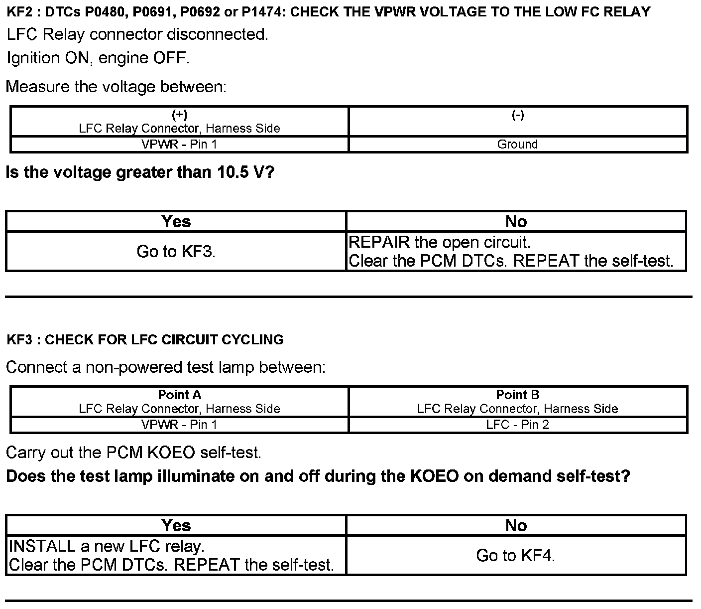 NOTE: The VPWR and LFC circuits may be reversed in the harness connector. Also, the LFC circuit may be wired to two separate relays. Refer to the Wiring Diagrams for additional information.