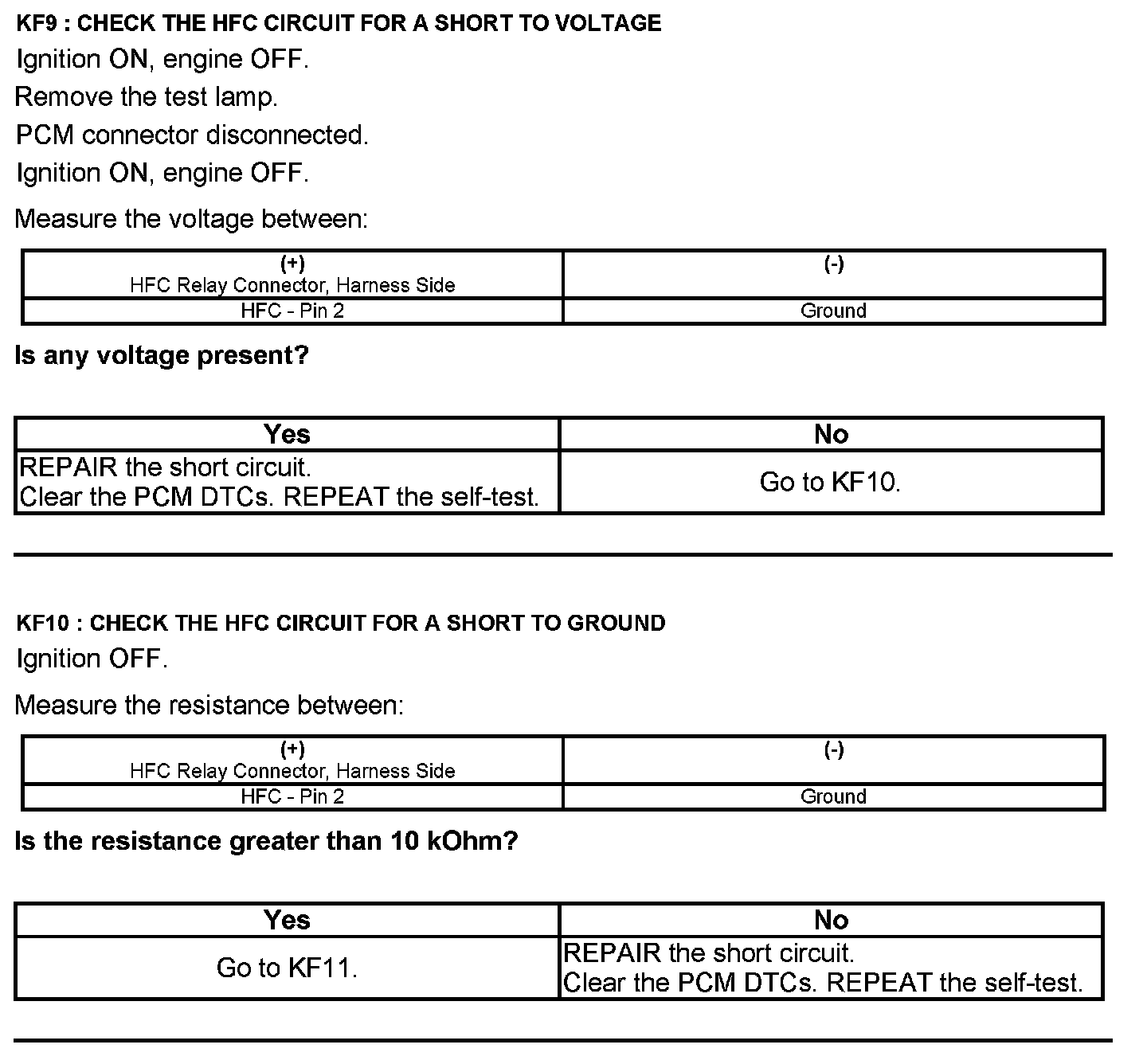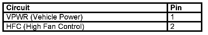 NOTE: The VPWR and HFC circuits may be reversed in the harness connector. Also, the HFC circuit may be wired to two separate relays. Refer to the Wiring Diagrams for additional information.