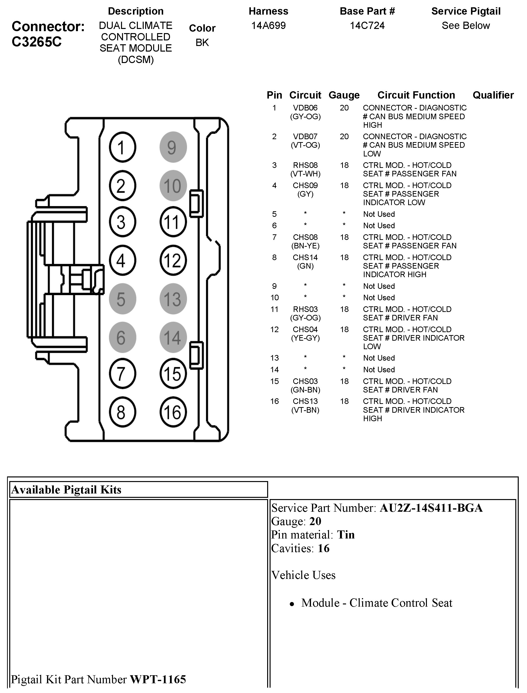 C3265C Dual Climate Controlled Seat Module (DCSM)
