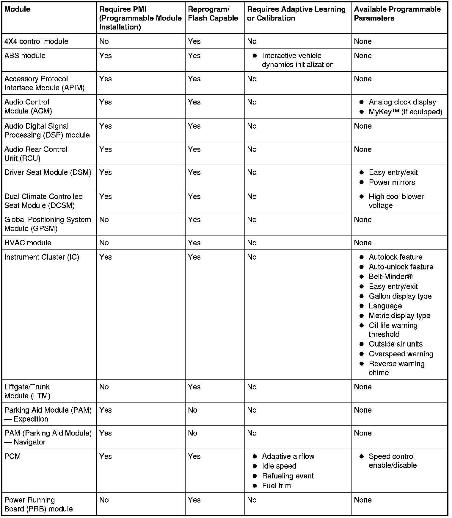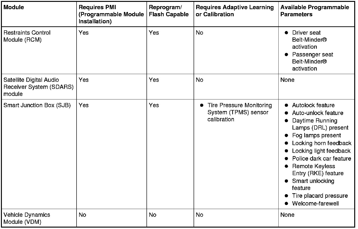 NOTE: Module reprogramming should be limited to circumstances where a published TSB (Technical Service Bulletin) procedure recommends doing so.