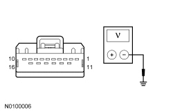 - Measure the voltage between the VDM (Vehicle Dynamics Module), harness side and ground as follows: