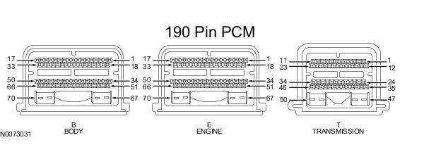 Powertrain Control Module (PCM) Connector - For PCM connector views or reference values, refer to Reference Values.