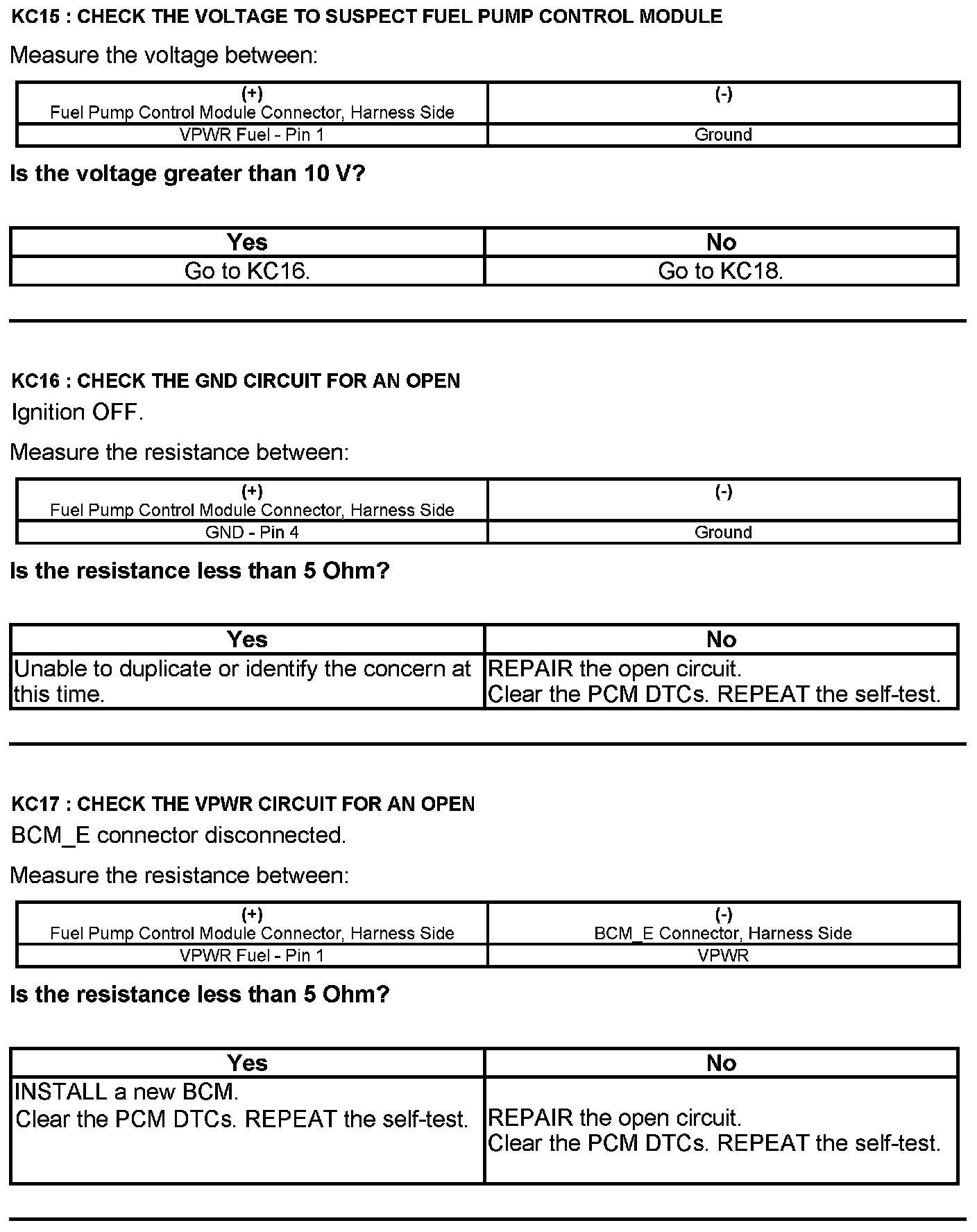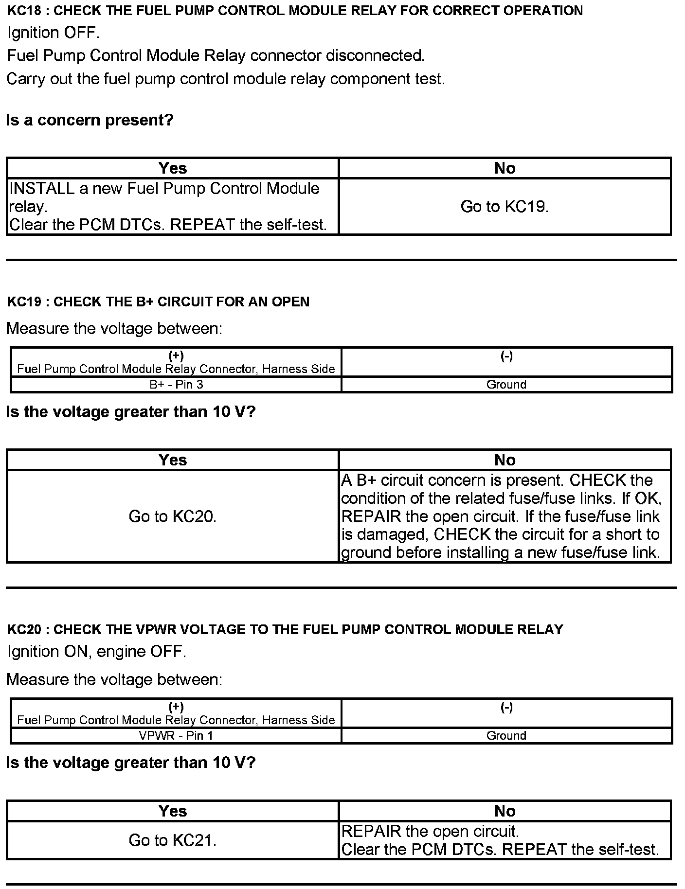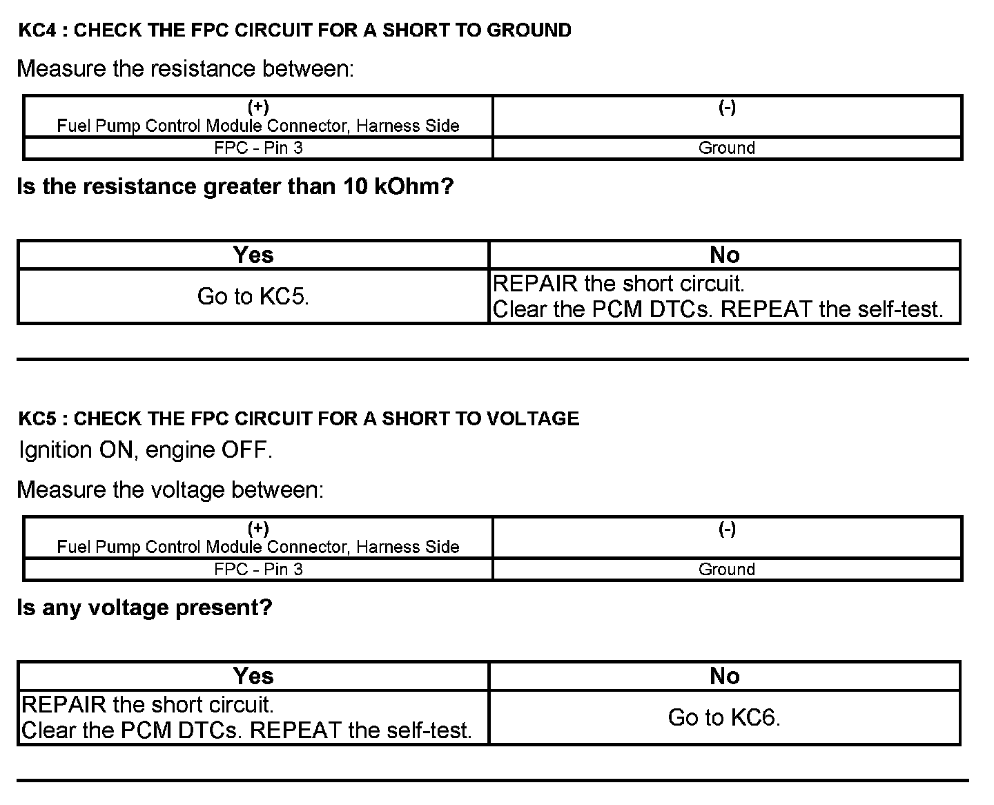 Test KC: Fuel Pump Control Module