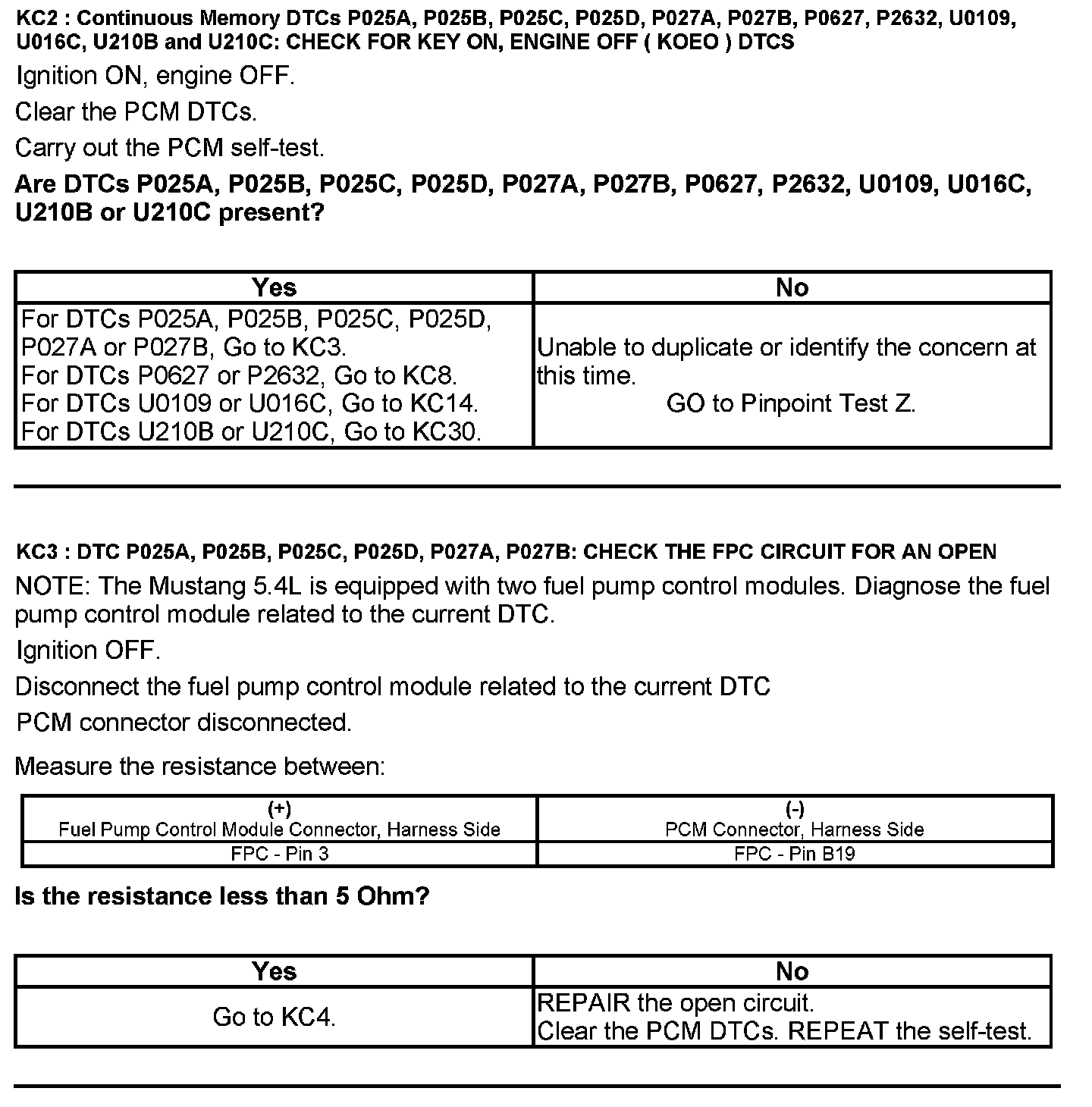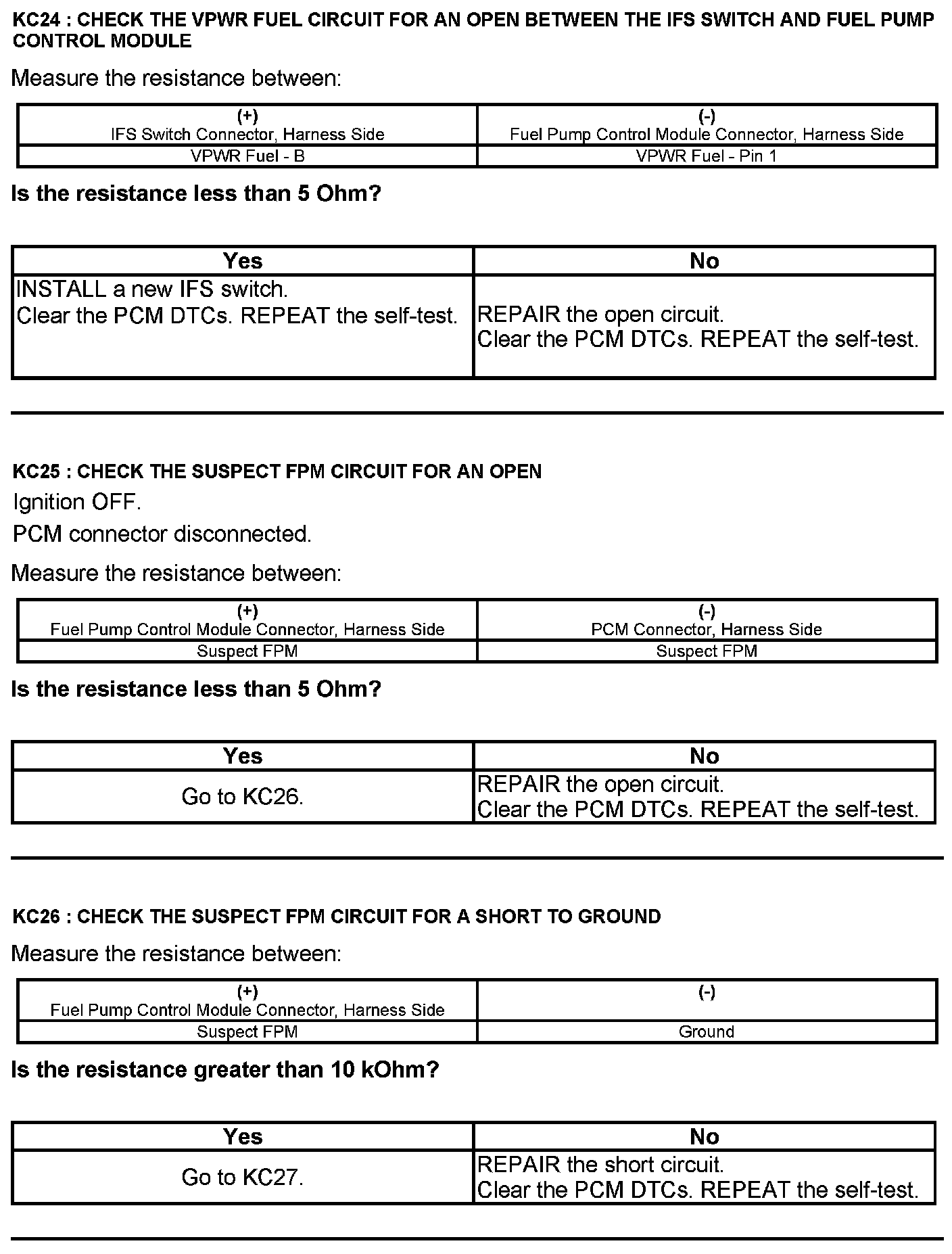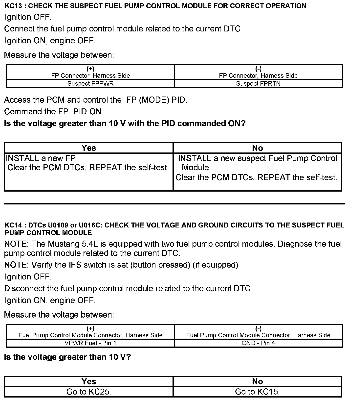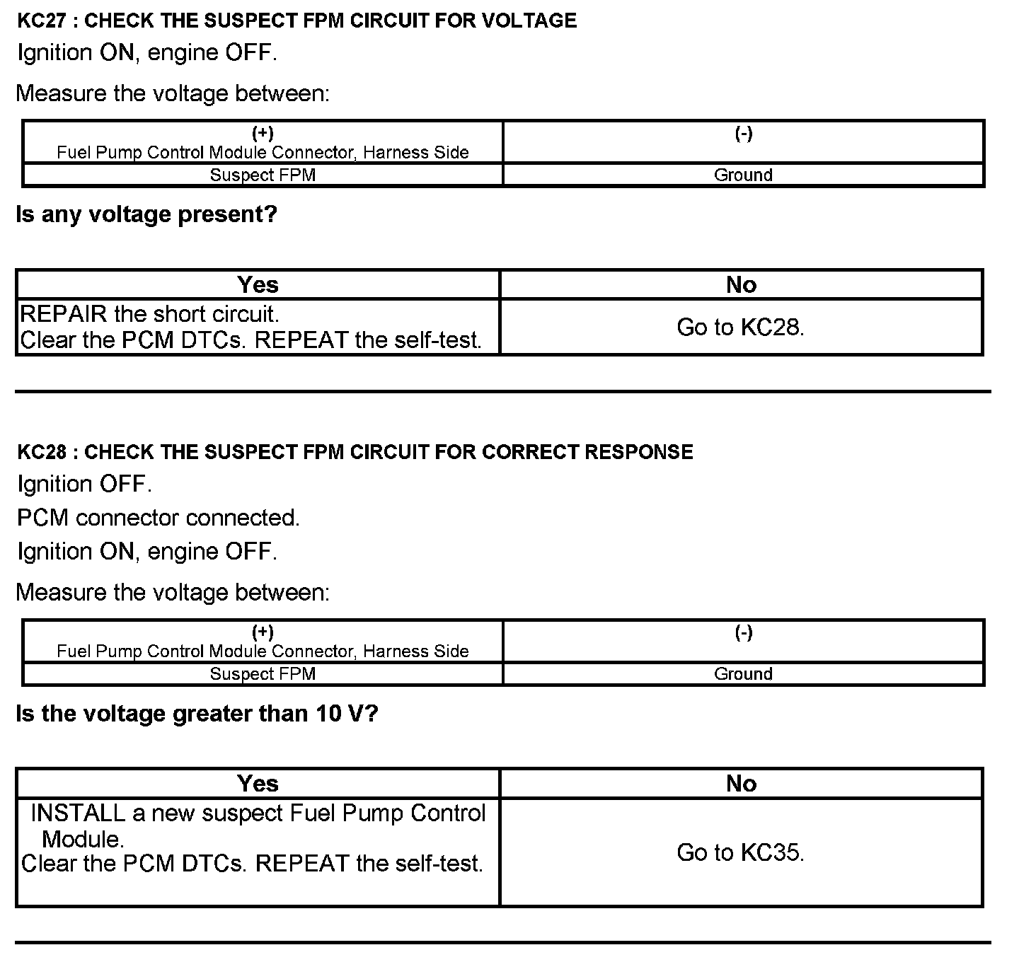 Test KC: Fuel Pump Control Module